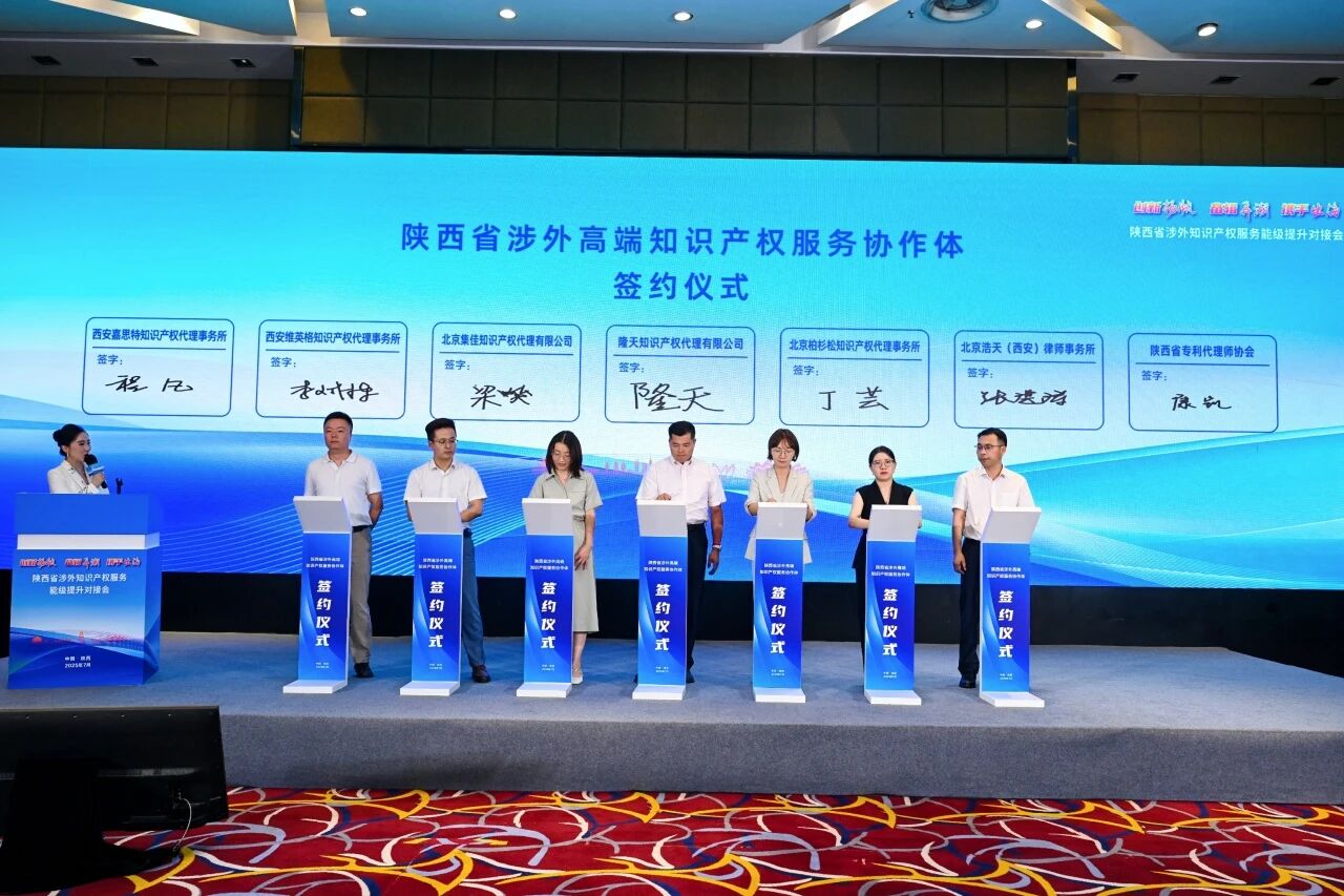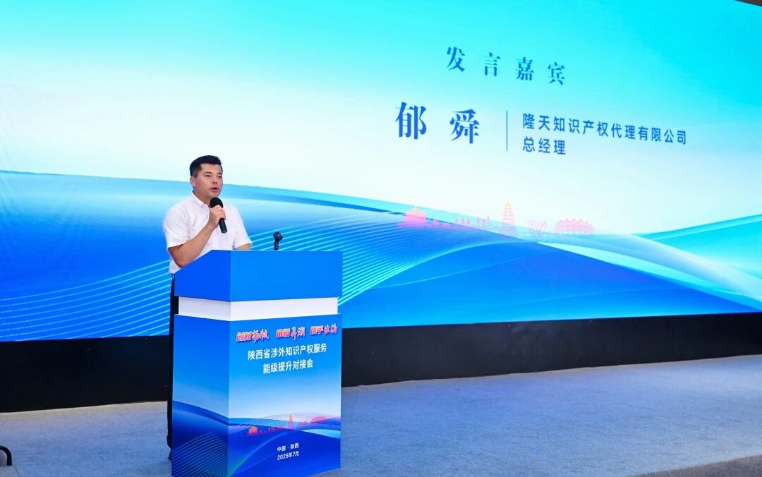 2025年7月22日,由陕西省知识产权局、中国国际贸易促进委员会陕西省分会主办,隆天知识产权代理有限公司、西安市场监督管理局高新区分局、陕西省专利代理师协会等单位联合承办的“陕西省涉外知识产权服务能级提升对接会”在西安绿地假日酒店成功举办。陕西省知识产权局党组书记、局长沈黎萍,党组成员李晓鸣,省贸促会副会长郑建设等领导及来自全省各地市市场监管局、贸促会、重点企业、高校院所、知识产权服务机构的200余位代表齐聚一堂,共同见证“陕西省涉外高端知识产权服务协作体”成立。作为协作体牵头单位,隆天知识产权总经理郁舜代表隆天签约并发言,全面阐述了隆天助力陕西企业全球化发展的能力、意愿与建议。