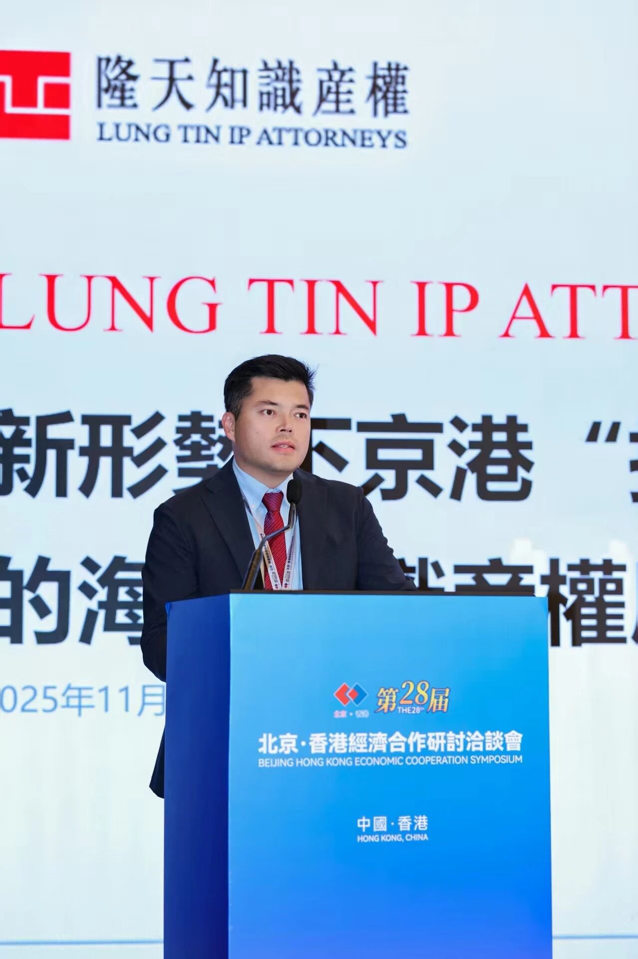 2025年11月12日至11月13日,以“京港携手 联通世界”为主题的第二十八届北京·香港经济合作研讨洽谈会在香港会展中心举办。隆天知识产权总经理郁舜博士受邀出席,并在京港知识产权专题活动中做主旨演讲。