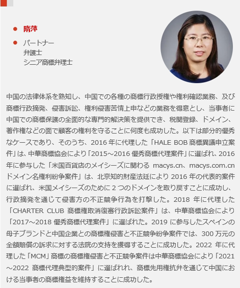 隆天知識産権は、1994年に設立され、中国で初めて政府の承認を得て国際顧客を代理する知的財産事務所の1つである。長年にわたる着実な発展を経て、隆天はすでに名声あるフルサービス型の知的財産事務所に成長し、世界的な戦略的協力ネットワークを構築した。高素質で専門化されたチームによって、隆天は知的財産分野でのサービスに専念し、毎年世界1300社以上の顧客のために案件を1万件以上処理している。